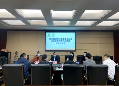4月14日,第31届世界大学生夏季运会运动员餐厅服务志愿者洽谈会召开,会议由旅游管理系党总支书记陈根元主持,系主任张莉、副主任沈超、院团委书记张家林及大运会运动员餐厅官方指定服务项目组王进一行参与座谈。