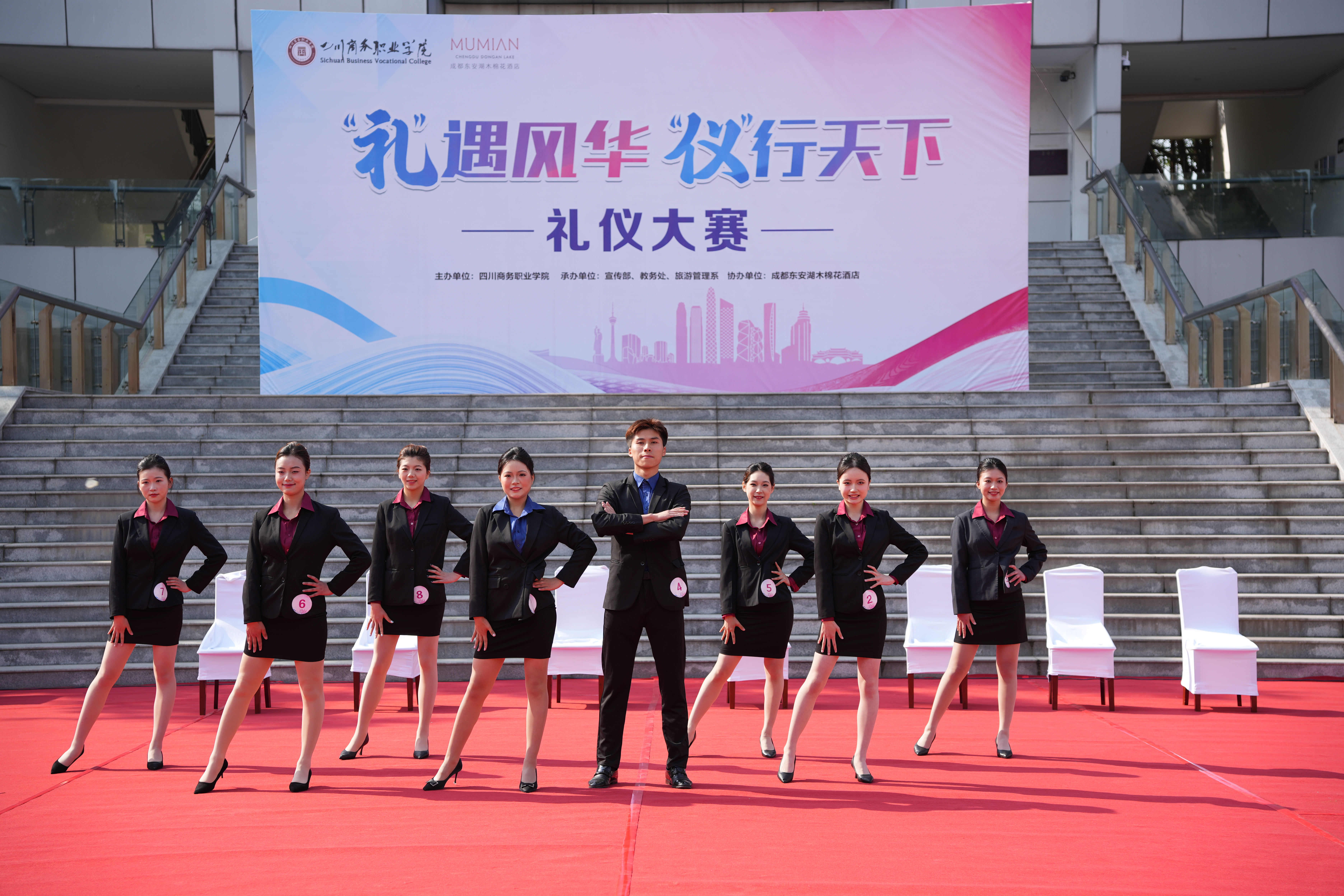 4月27日,由学院主办,旅游管理系联合学院教务处承办,成都东安湖木棉花酒店协办的第二届“‘礼’遇风华‘仪’行天下”礼仪大赛在振华广场举行。学院党委副书记、院长高司华,副院长康璐莅临现场观看指导,教务处领导、旅游管理系领导、旅游管理系师生代表和成都东安湖木棉花酒店代表参加活动。