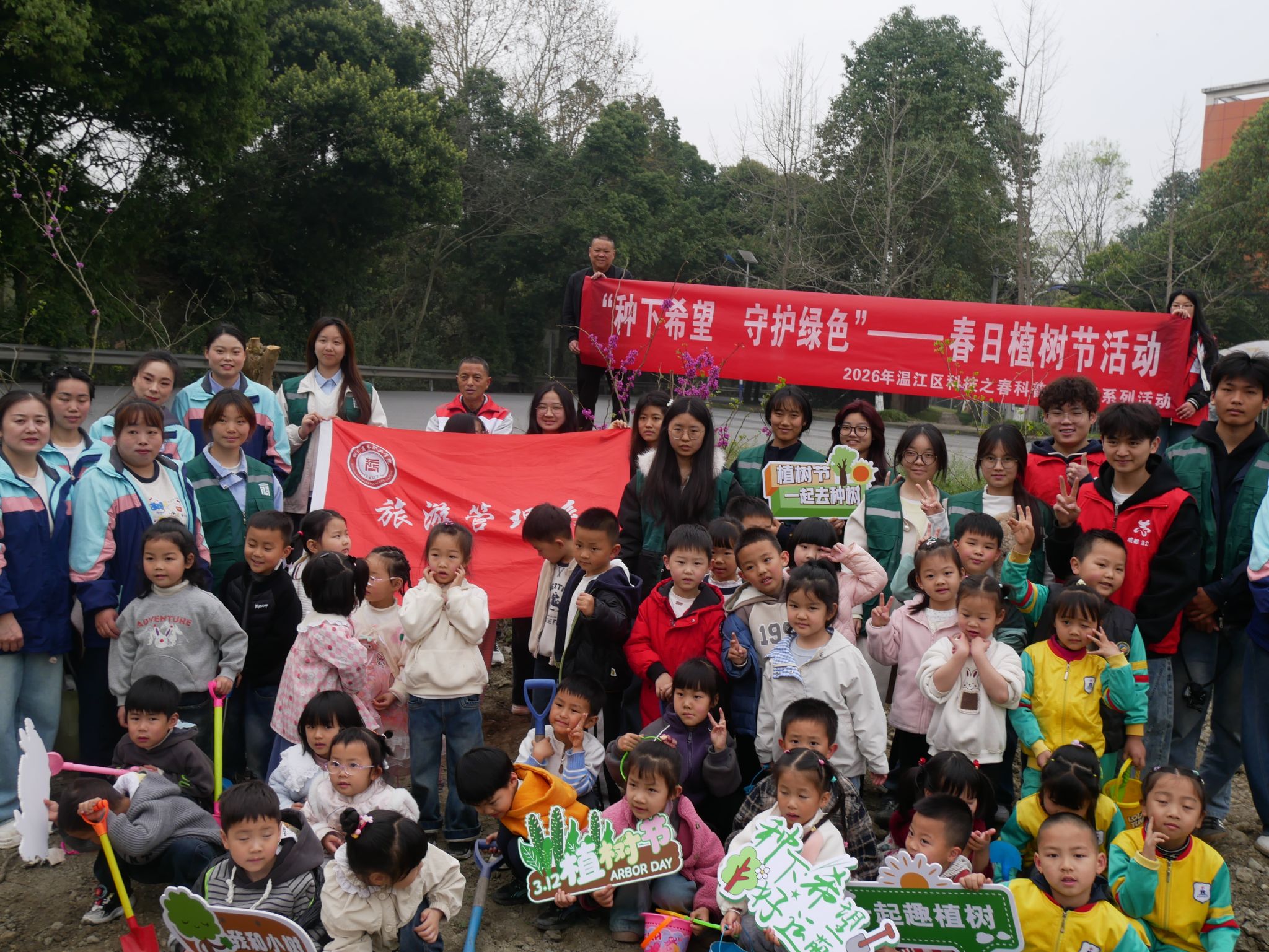 2026年3月12日,春风送暖、绿意萌动,恰逢植树节,我系组织志愿者携手和盛镇幼儿园开展植树志愿活动,以植绿护绿的实际行动践行雷锋精神,在春日里播撒绿色希望,此次活动也标志着旅游管理系学雷锋志愿服务月正式启幕。现场,志愿者发挥专业所长,将组织协调、服务保障能力融入活动各环节。活动筹备阶段,志愿者提前将小树苗、儿童专用铁锹、水桶等工具整齐摆放,以饱满的热情做好各项准备工作;植树过程中,志愿者分组与小朋友们默契协作,...