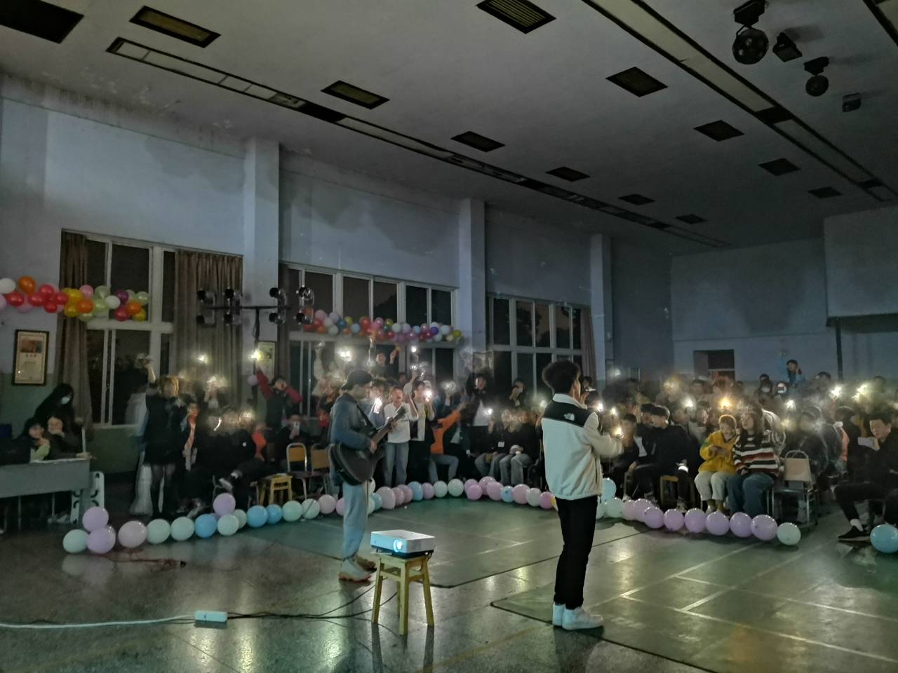 活动伊始,由19级学生自创的歌曲串烧《成都和喜欢你四部曲》,首次将活动带入了高潮,嗨炸全场。随后,20级小萌新们的带来的歌曲《雨爱》和《有何不可》也毫不逊色,夺得芳心。