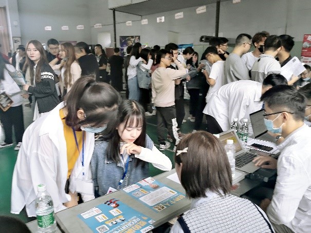 招聘会启动后,同学们手持精心准备的简历,主动与企业沟通、交流,积极投递简历。企业招聘代表从思想品德、职业道德和专业技能等方面对面试学生进行了解,学生也向企业方了解了工作岗位、工作内容和待遇福利等,其中15家企业在当日下午便组织在校内开展宣讲会和初次面试,部分同学获得复试机会。
