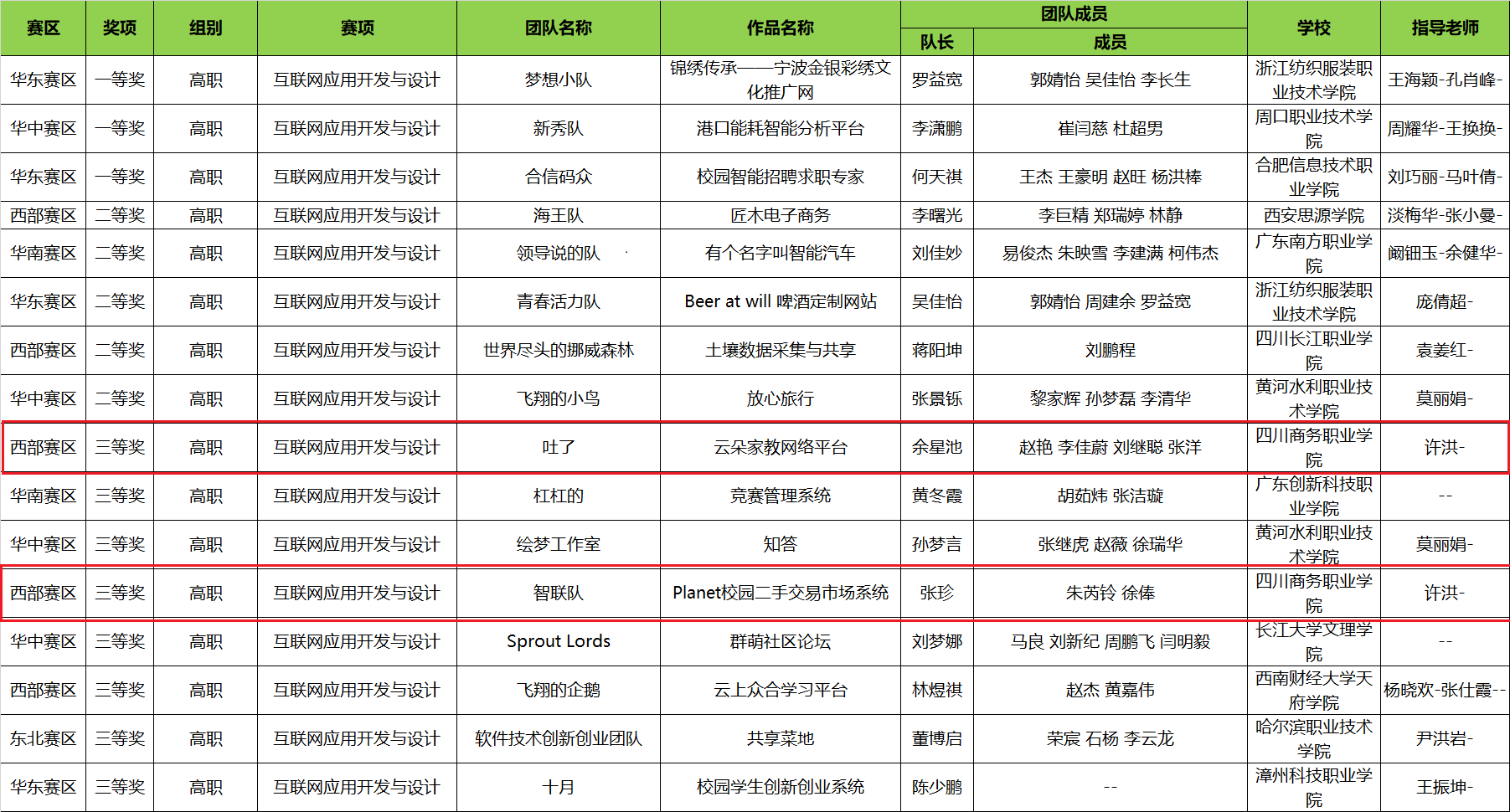 本次比赛发现杯大赛分设“互联网应用开发与设计” 、“网络营销技能”、“艺术设计”、“大数据”、“智慧数链财经”和“人工智能六个赛项,每个赛项分设本科组(含本科以上)和高职组。经过前期报名、初赛评审、以及区域赛等多个环节,最终万象城信息技术系有2支参赛队伍经过激烈角逐,脱颖而出,斩获了高职组“互联网应用开发与设计”西部赛区三等奖。这是万象城首次在这样级别的赛事中获奖。