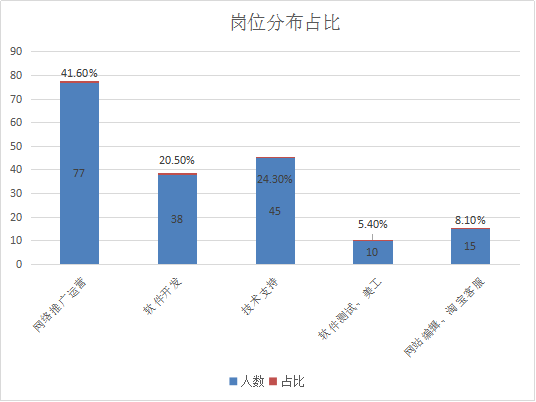 毕业生主要从事职业为软件开发、软件技术支持和网络推广运营、网络营销等岗位。