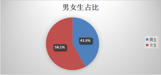 1、 按性别划分:男生90人,占毕业生总数的41.9%;女生125人,占毕业生总数的58.1%。
