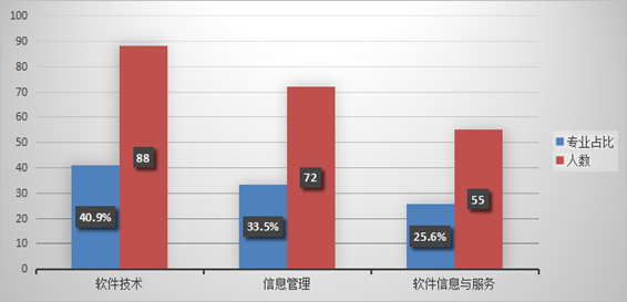 3、 各专业毕业生:软件技术88人;计算机信息管理73人;软件信息与服务专业55人。