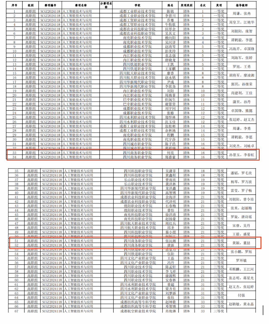 12月13日,由四川省教育厅主办、成都工业职业技术学院承办的2024年“中银杯”四川省职业院校技能大赛(高职组)人工智能技术与应用赛项结果揭晓。由万象城信息技术系教师李春红、孙景玉指导的学生团队获得二等奖,黄颖、董喆老师指导的学生团队获得三等奖,实现万象城在该赛项上零的突破!